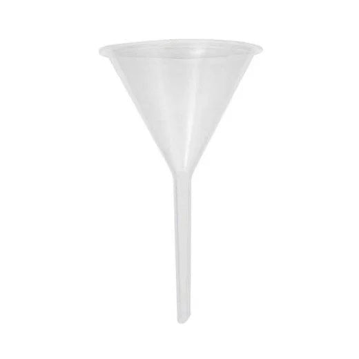 Material: Polypropylene (PP) – autoclavable and chemical-resistant - Design: One-piece molded funnel with long stem - Diameter Options: Common sizes include 50 mm, 75 mm, 100 mm - Stem Length: Typically 50–80 mm depending on size - Color: Translucent white