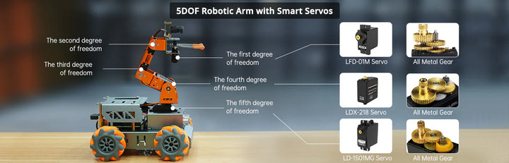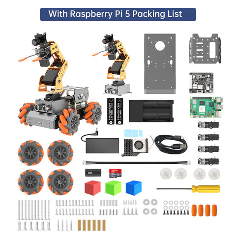 MasterPi AI Vision Robot Arm with Mecanum Wheels Car for Raspberry Pi 5