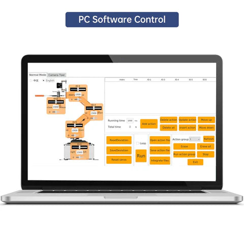 Functions: AI Vision Robot Arm 360° Omnidirectional Movement AI Vision Recognition, Target Tracking Color Sorting Visual Line Following Color Sorting PC and Mobile App Control