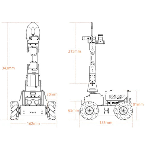 MasterPi is an AI vision robot car powered by Raspberry Pi. Featuring a versatile Mecanum-wheel chassis, high-quality metal gear servos, and an HD camera, it's fully programmable in Python. MasterPi is ideal for autonomous driving, AI vision recognition, target tracking, visual line following—it unlocks hands-on AI experiences and brings your code to life.